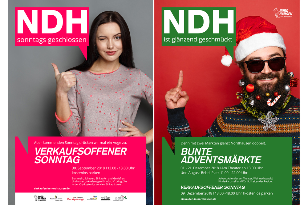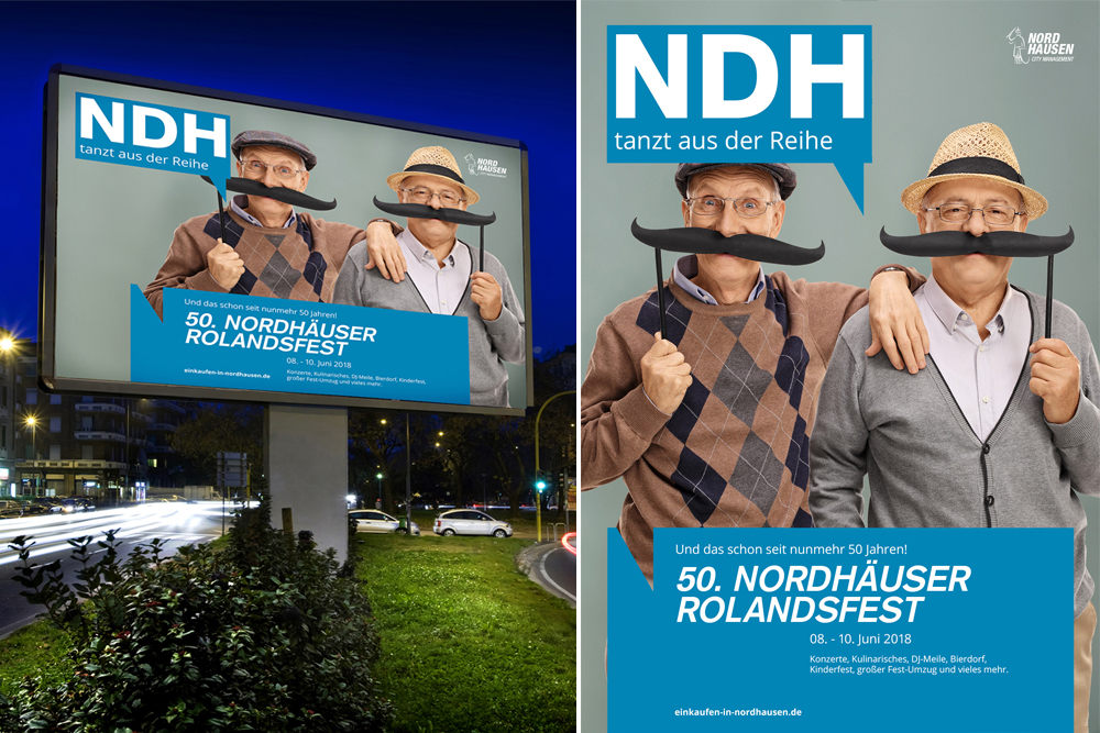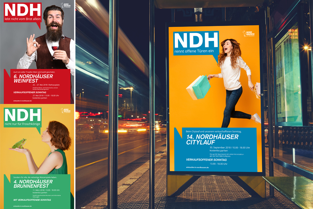 Das Kürzel „NDH“ steht als Branding der Stadt und eröffnet den Dialog zu dem Bürgern. Die Headline dient als Einleitung und verbindet die individuellen Motive mit dem Event. (Zweitplatzierter des Wettbewerbes.)
