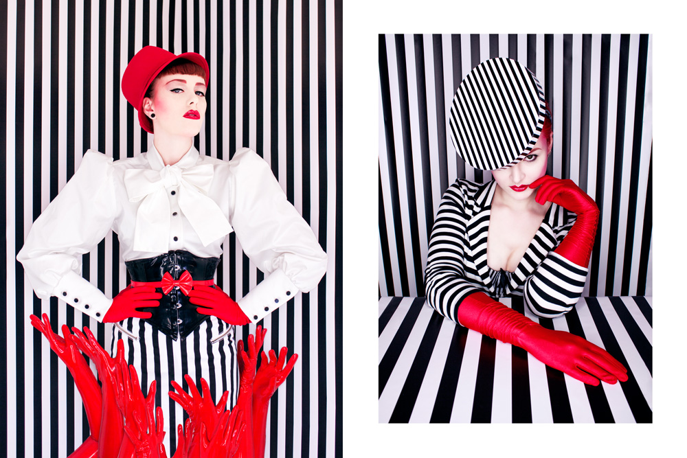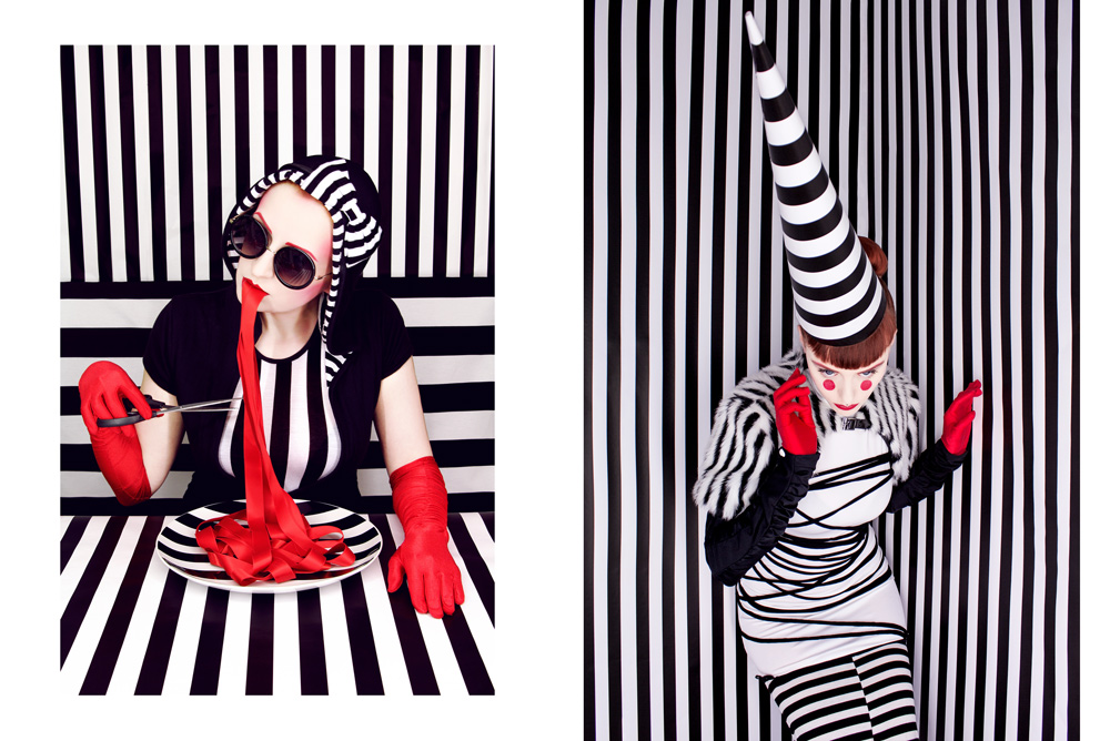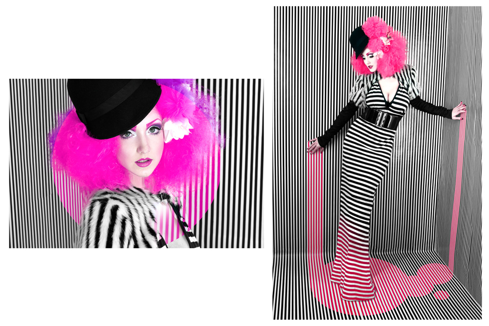 Durch die Überlagerung der Muster soll das Model und die Kleidung fast mit dem Hintergrund verschmelzen, um so zu einem surrealen Gesamtbild werden.
