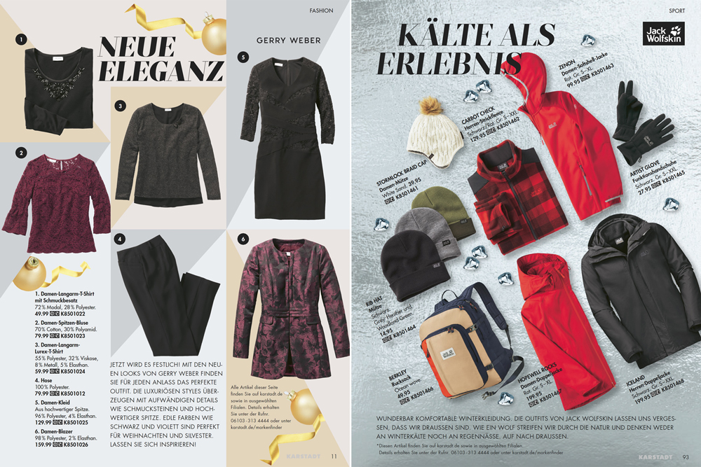 Aufgabe: Erstellen von Seiten-Layouts zu unterschiedlichsten Produktbereichen für das Karstadt Magazin "Meine Weihnachtsmomente"